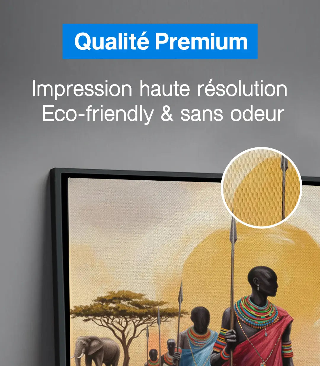 Découvrez nos tableaux exclusifs sur massinart.ma, alliant artisanat et modernité pour sublimer vos espaces. Chaque tableau est conçu à partir d’un châssis de 3 cm et d’une toile canvas artistique en coton (80 %), fabriquée en Allemagne. L’impression est réalisée en haute résolution avec des encres écologiques et sans odeur, garantissant une qualité exceptionnelle.