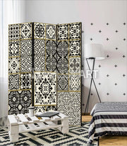 Paravent Mosaïque en doré - L126 x H170 cm (3 Volets) / Standard (Bâche enduite)