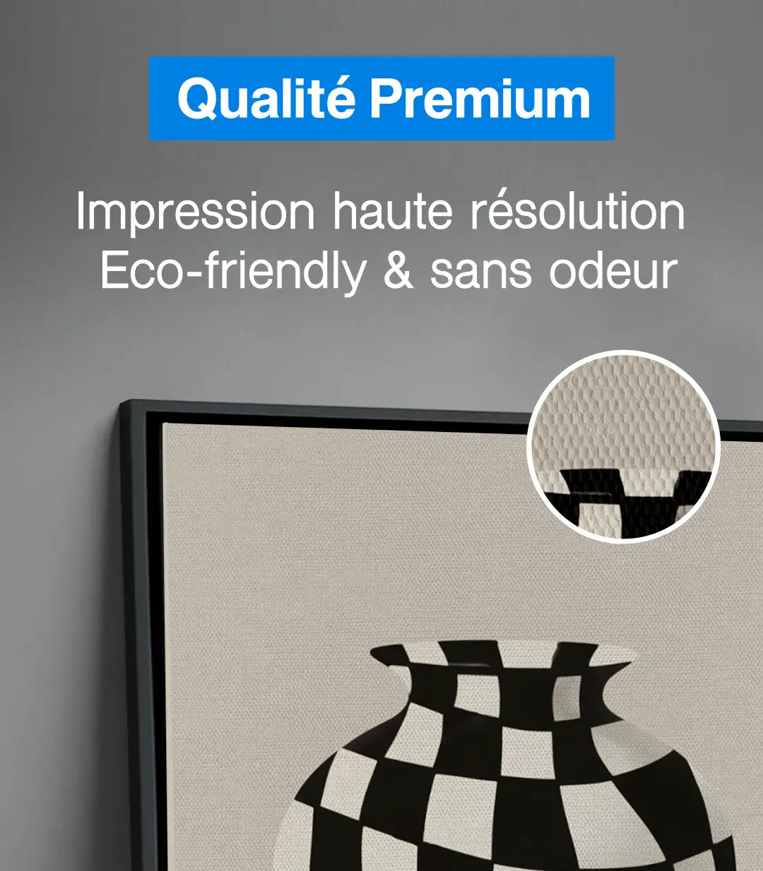 Mur de cadre en tableaux exclusifs sur massinart.ma, alliant artisanat et modernité pour sublimer vos espaces. Chaque tableau est conçu à partir d’un châssis de 3 cm et d’une toile canvas artistique en coton (80 %), fabriquée en Allemagne. L’impression est réalisée en haute résolution avec des encres écologiques et sans odeur, garantissant une qualité exceptionnelle.