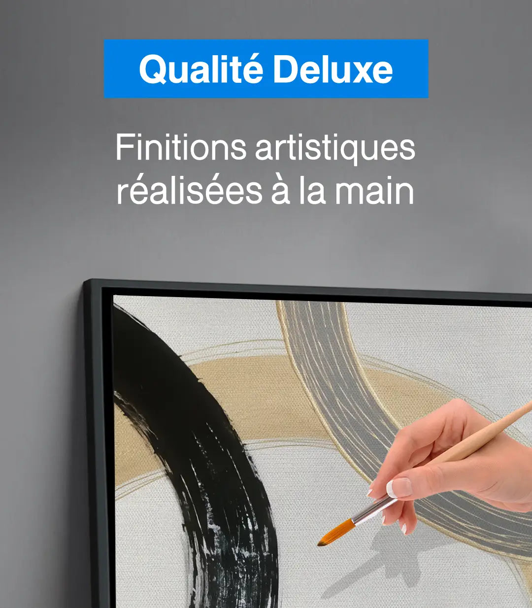 • Qualité Deluxe : Retouche à la main par artiste après impression sur toile, rehaussant reliefs et détails.