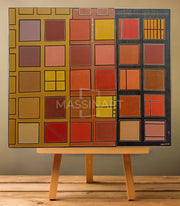 harmonie de carrés marrons - signé par l'artiste Nada ZR. - L100 x H120 m