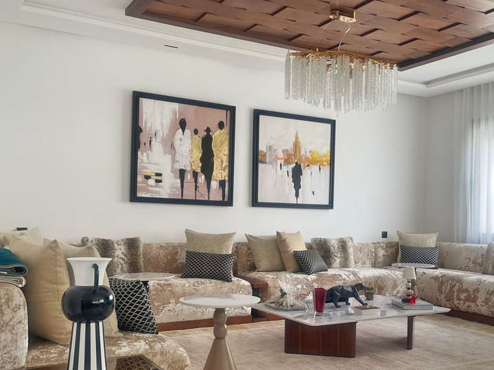 Découvrez nos tableaux exclusifs sur massinart.ma, alliant artisanat et modernité pour sublimer vos espaces. Chaque tableau est conçu à partir d’un châssis de 3 cm et d’une toile canvas artistique en coton (80 %), fabriquée en Allemagne. L’impression est réalisée en haute résolution avec des encres écologiques et sans odeur, garantissant une qualité exceptionnelle.