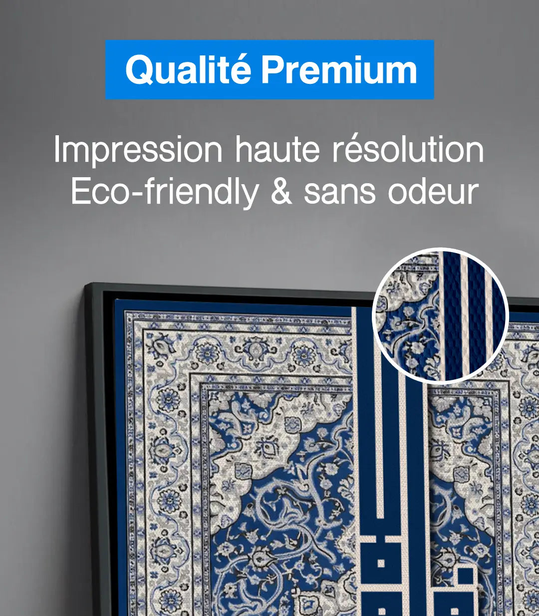 Découvrez nos tableaux exclusifs sur massinart.ma, alliant artisanat et modernité pour sublimer vos espaces. Chaque tableau est conçu à partir d’un châssis de 3 cm et d’une toile canvas artistique en coton (80 %), fabriquée en Allemagne. L’impression est réalisée en haute résolution avec des encres écologiques et sans odeur, garantissant une qualité exceptionnelle.
