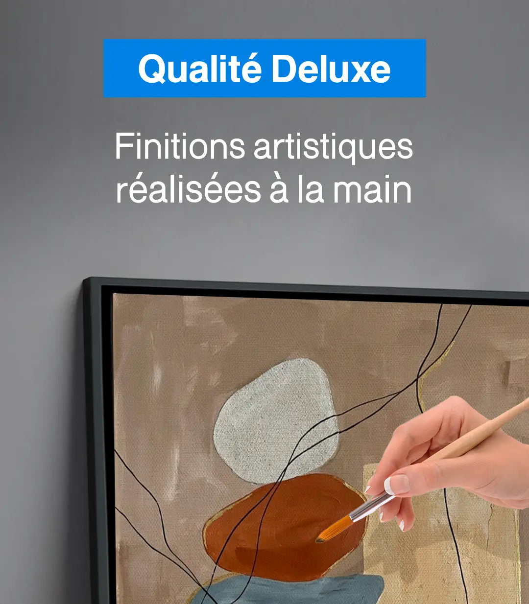 Tous nos tableaux sont des créations 100 % originales, avec la possibilité d’ajouter un cadre américain luxueux en bois massif. Livrés prêts à accrocher avec un kit de fixation offert une installation facile et sans dommage pour vos murs.