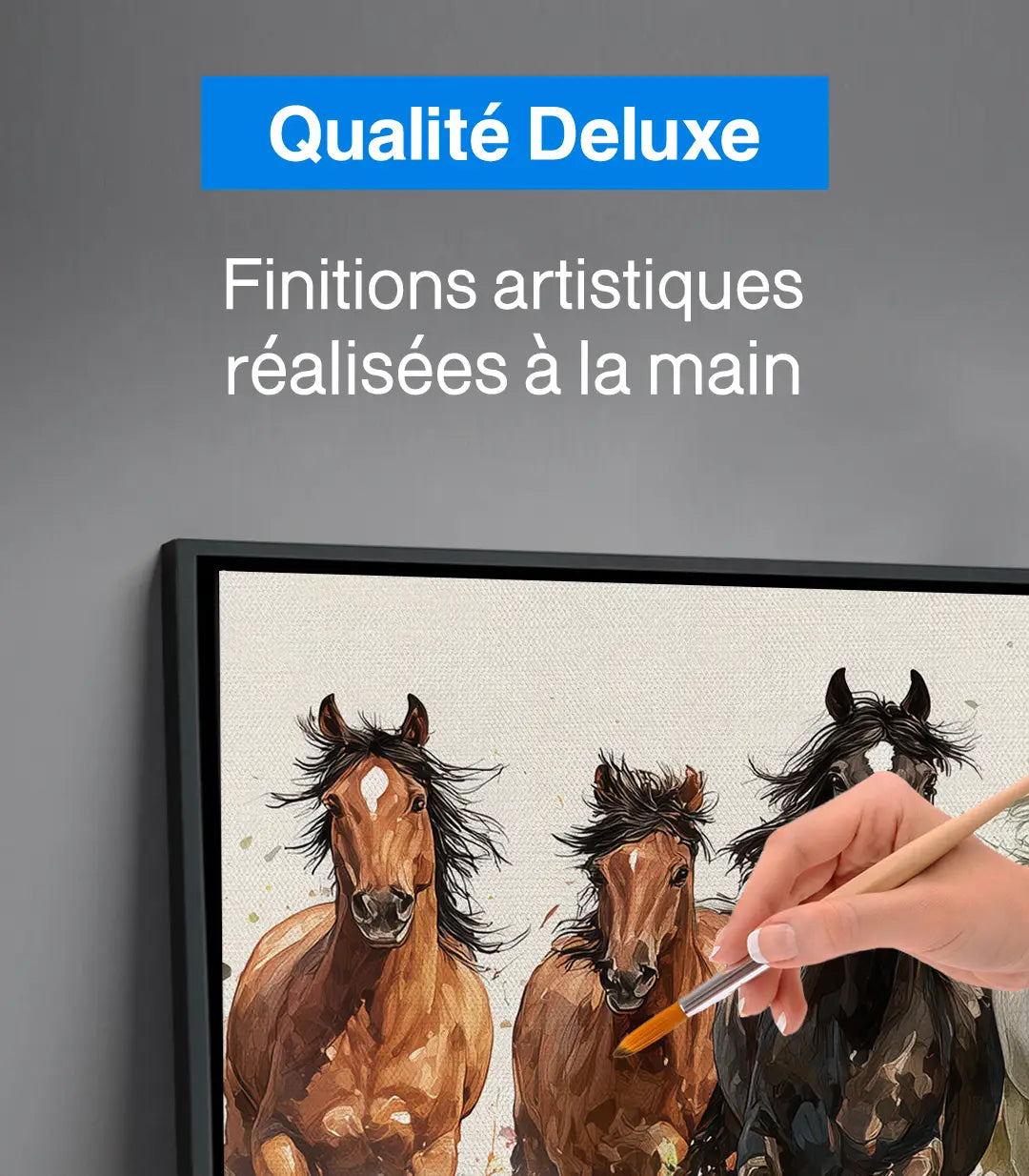 • Qualité Deluxe : Retouche à la main par artiste après impression sur toile, rehaussant reliefs et détails.