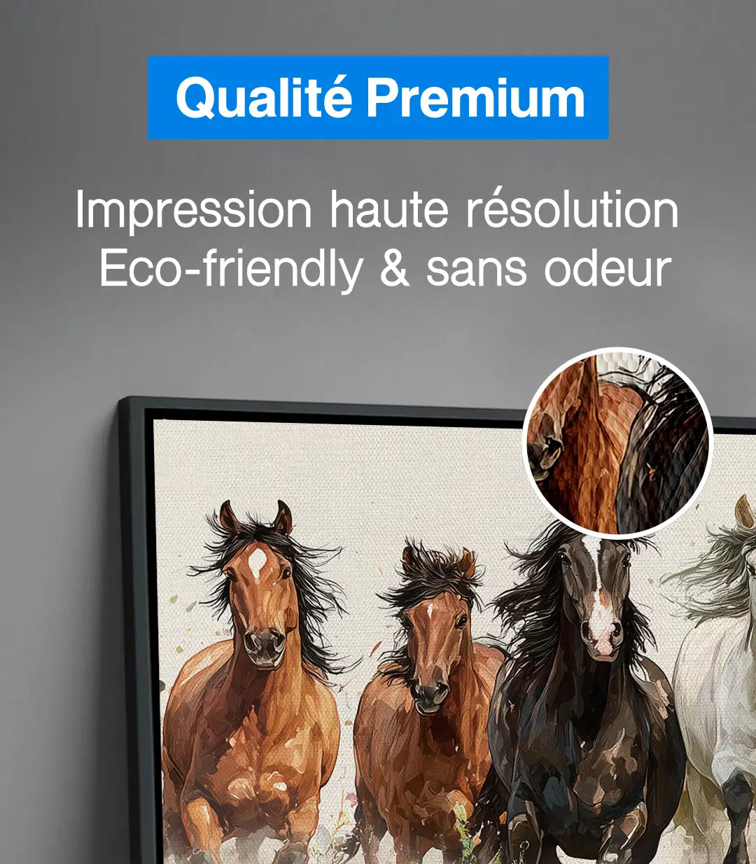Tous nos tableaux sont des créations 100 % originales, avec la possibilité d’ajouter un cadre américain luxueux en bois massif. Livrés prêts à accrocher avec un kit de fixation offert une installation facile et sans dommage pour vos murs.